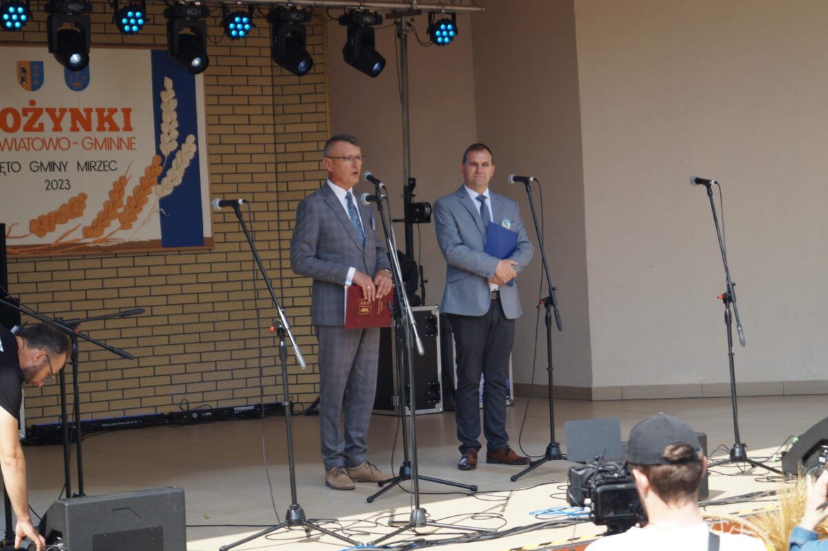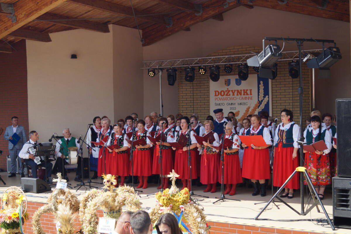 Po mszy, w trakcie której poświęcono wieńce i poczęstowano uczestników chlebem, korowód udał się do mirzeckiego amfiteatru. Tam tradycyjnie ośpiewano wieńce dożynkowe. Wręczono też nagrodę w konkursie na najlepsze gospodarstwo w powiecie starachowickim „Gospodarstwo z duchem czasu”, którą wygrała Weronika Wiśnios z Mirca-Majoratu. W dalszej części programu na scenie wystąpiły zespoły folklorystyczne z całego powiatu: Tychowianie, Osinianki, Trębolanki, Jutrzenka, Kumosie, Małyska Dolina, Gromada i Kapela Sąsiedzi, a także Brodowianki z Brodów, Okrasa z Pawłowa, Marcinkowianie z Wąchocka oraz zespół dziecięco-młodzieżowy „Hanecki”. W międzyczasie uczestnicy Dożynek mogli zrobić zakupy na stoiskach z domowym jedzeniem i rękodziełem, zjeść smaczne darmowe posiłki oraz skorzystać z darmowych atrakcji dla dzieci.